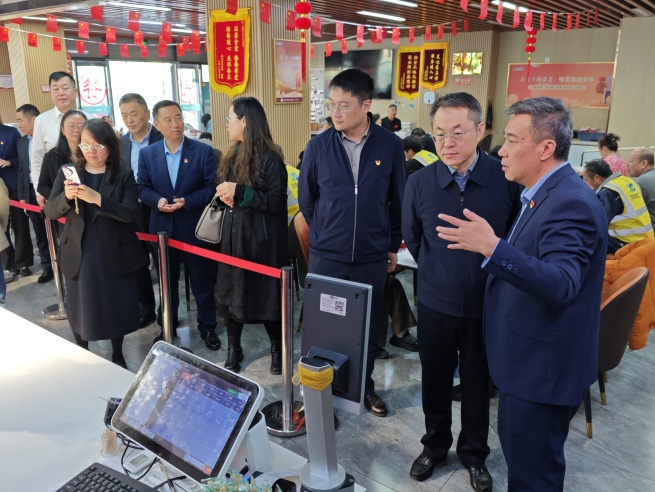 在山東健康物業集團新力實業公司,雙方圍繞新時期加強和改進企業黨的建設這一主題進行深入探討。交流內容涵蓋強化政治引領、規范基層組織建設、創新黨建工作載體與方法、促進黨建與生產經營深度融合等多個方面。座談會后,調研團隊實地考察了新力實業公司旗下“全福享”長者食堂馬鞍山路旗艦店,詳細了解了該品牌在社區餐飲服務方面的運營模式、服務特色、品牌建設,以及黨建引領在基層服務中落地見效的創新實踐,對“全福享”餐飲品牌在滿足民生需求、提升服務品質方面取得的成效給予了充分肯定。