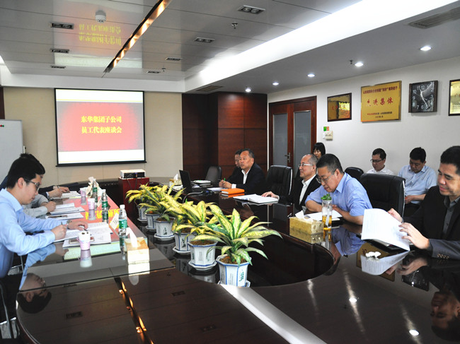 在督導中,督導組召開集團子公司職工代表座談會,集團黨委副書記、總經理王立新同志主持會議。會上,東華假日酒店管理公司副董事長、酒店副總經理王志東同志,東華物業管理有限公司董事長鄭懷軍同志,總經理蔡俊林同志分別就公司發展和經營管理向督導組作了匯報,并就公司改革發展、員工薪酬、基層黨建等難點問題進行了討論交流。