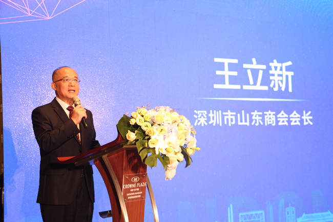 深圳東華集團黨委書記、董事長,深圳市山東商會會長王立新代表企業家致辭,他表示:建設粵港澳大灣區,是黨中央國務院的重大決策,其經濟和文化的大發展,必產生溢出效應,其發展模式和措施的經驗,當給予重要關注和學習。深圳市山東商會作為鏈接企業與政府的橋梁,將立足大灣區,超前預期,貼近實際,精準服務。把山東的文化優勢、資源優勢、產業優勢與深圳的機制優勢、人才優勢、創新優勢結合起來,推動魯深兩地合作項目開展深層次洽談溝通。