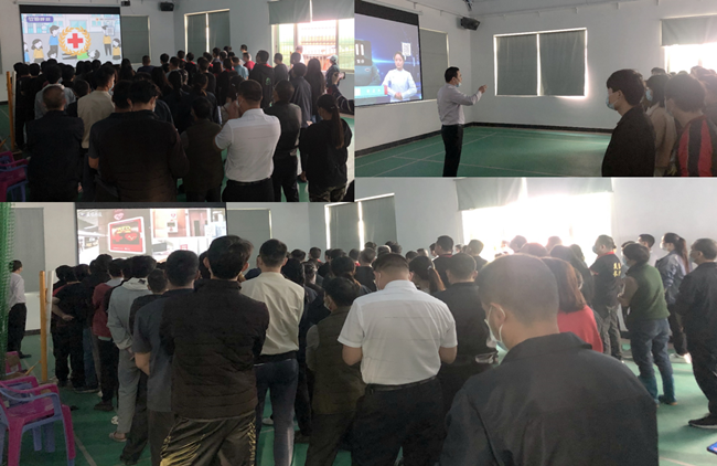 隨后,東莞富源公司副總經理張緒明同志在孵化器活動中心向參演人員進行了急救主題知識培訓。他通過展示事故案例、剖析事故成因、總結事故后果,指出掌握必要急救知識的重要意義。接下來,大家共同觀看了心肺復蘇術(BLS、AED)、海姆立克法(氣道異物)的操作視頻,全體人員認真聽講、仔細體會,學到了實用的急救技能和方法,培訓取得了良好的效果。
