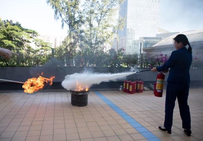 隨后,演練活動進入實操環(huán)節(jié)。員工們學習了干粉滅火器的正確使用方法,親自操作滅火器,進行模擬滅火實踐,成功撲滅“火源”,將所學知識轉(zhuǎn)化為實戰(zhàn)技能。
