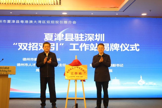 推介會上,夏津縣經濟合作中心主任李曉兵詳細推介了夏津縣的產業現狀以及人才政策。德州市委組織部副部長、人才事業發展中心主任周春華與深圳東華黨委副書記王磊共同為夏津縣駐深圳“雙招雙引”工作站揭牌。