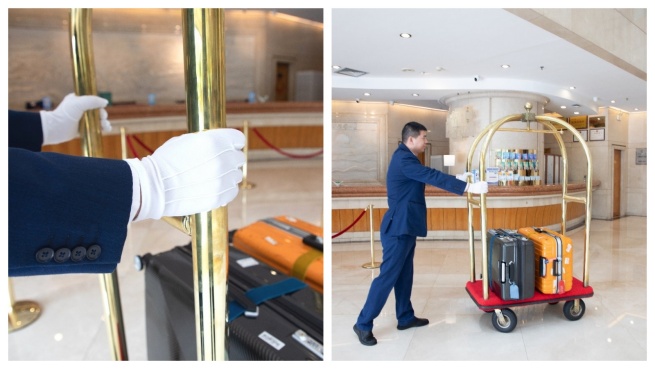 這雙手穩穩提起客人的行李箱。他每天重復上百次托舉動作,客人滿意的微笑是這雙手收到的最好的饋贈勛章。這雙手始終溫熱,指尖帶著恰到好處的力度,用專業姿態迎送酒店的每一位客人,傳遞著酒店對客人最妥帖的溫度。