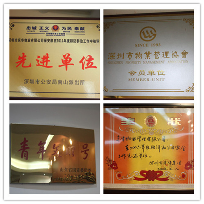 公司自1993年5月創建成立以來,先后成為深圳市物業管理協會常務理事單位和深圳市物業管理協會第三屆會員單位;連續六年被集團黨委評為“安全工作先進單位”;公司在南山轄區內開展的群防群治工作中連續五年實現社區內零發案率,被深圳市公安局南山派出所評為“先進單位”;連續五年保持“青年文明號”稱號;2014年11月在集團舉辦的第五屆運動會中榮獲拔河比賽冠軍。黨支部夏天明同志2011、2014年度兩次獲得“省管企業優秀黨員稱號”;張緒明同志獲得2015年度“省管企業優秀黨員稱號”;支部3 名黨員被集團黨委評為“優秀共產黨員”。